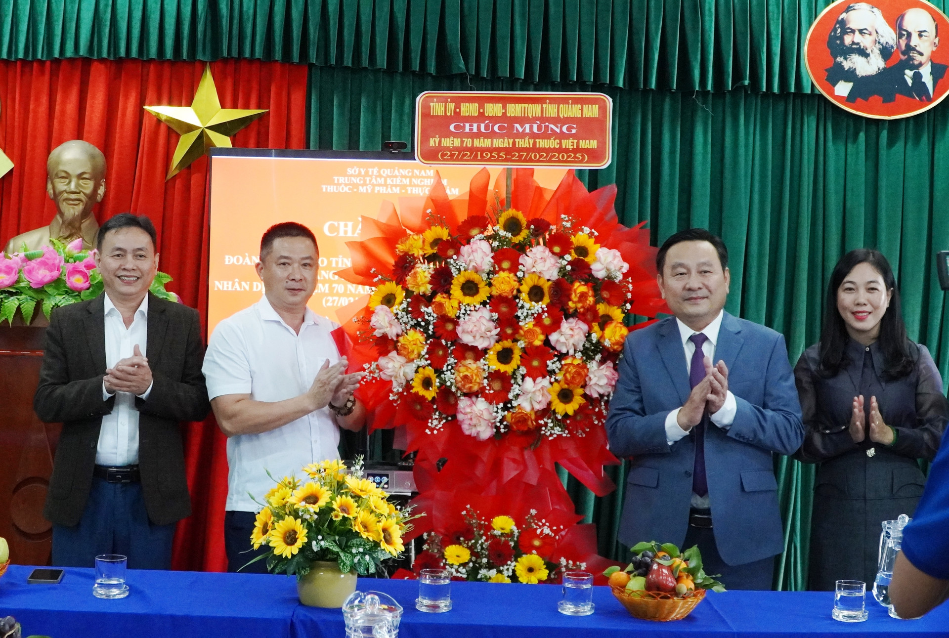 Phó Chủ tịch HĐND tỉnh Nguyễn Công Thanh tặng hoa chúc mừng Trung âm Kiểm nghiệm