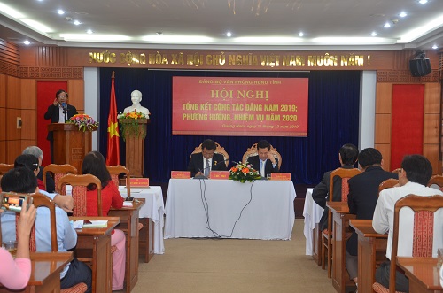 Năm 2019, Đảng bộ Văn phòng đã bám sát sự lãnh đạo của Tỉnh ủy, Đảng đoàn HĐND và Đảng ủy Khối các cơ quan; quán triệt đầy đủ các chủ trương, chính sách của Đảng, pháp luật của Nhà nước; lãnh đạo thực hiện tốt các chương trình, kế hoạch công tác của Thường trực HĐND, các Ban của HĐND tỉnh; sáng tạo linh hoạt trong tổ chức thực hiện nhiệm vụ, đáp ứng yêu cầu thực tiễn, đạt được những kết quả khá toàn diện.