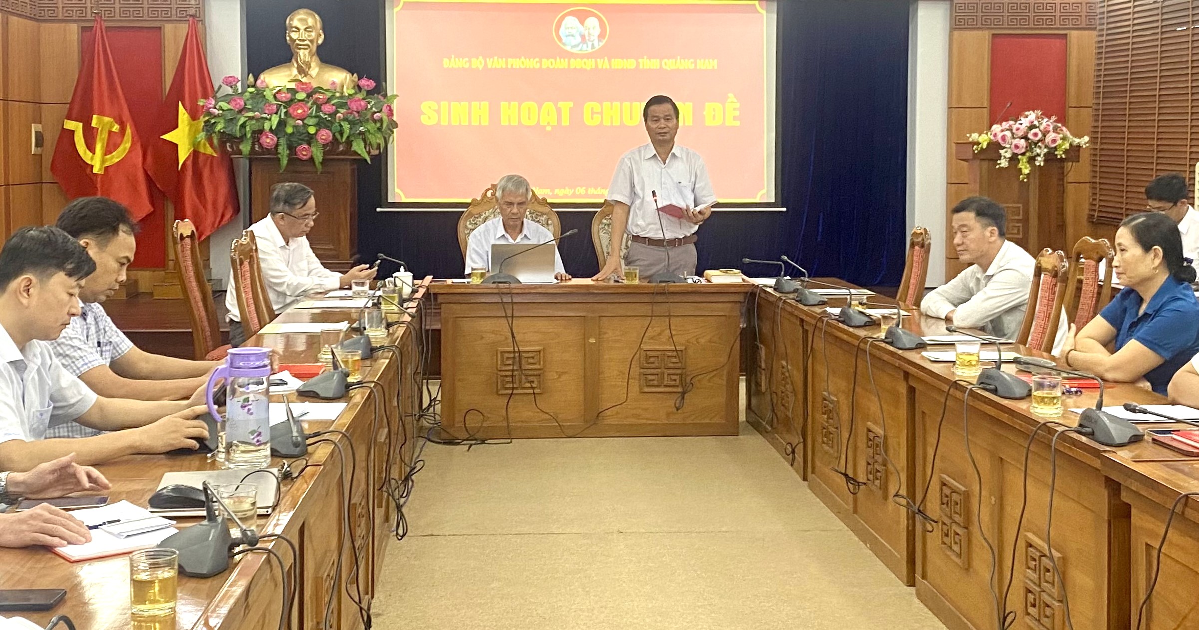 Chiều 06.10, Đảng Bộ Văn phòng Đoàn ĐBQH và HĐND tỉnh (Đảng bộ Văn phòng) tổ chức Hội nghị sinh hoạt chuyên đề học tập và làm theo tư tưởng, đạo đức, phong cách Hồ Chí Minh. Đồng chí Trần Xuân Vinh - Ủy viên BTV Tỉnh ủy, Phó Bí thư Đảng đoàn HĐND tỉnh, Phó Chủ tịch HĐND tỉnh, các đồng chí trong Thường trực HĐND tỉnh, lãnh đạo các Ban của HĐND tỉnh và toàn thể đảng viên sinh hoạt tại Đảng bộ Văn phòng tham dự.