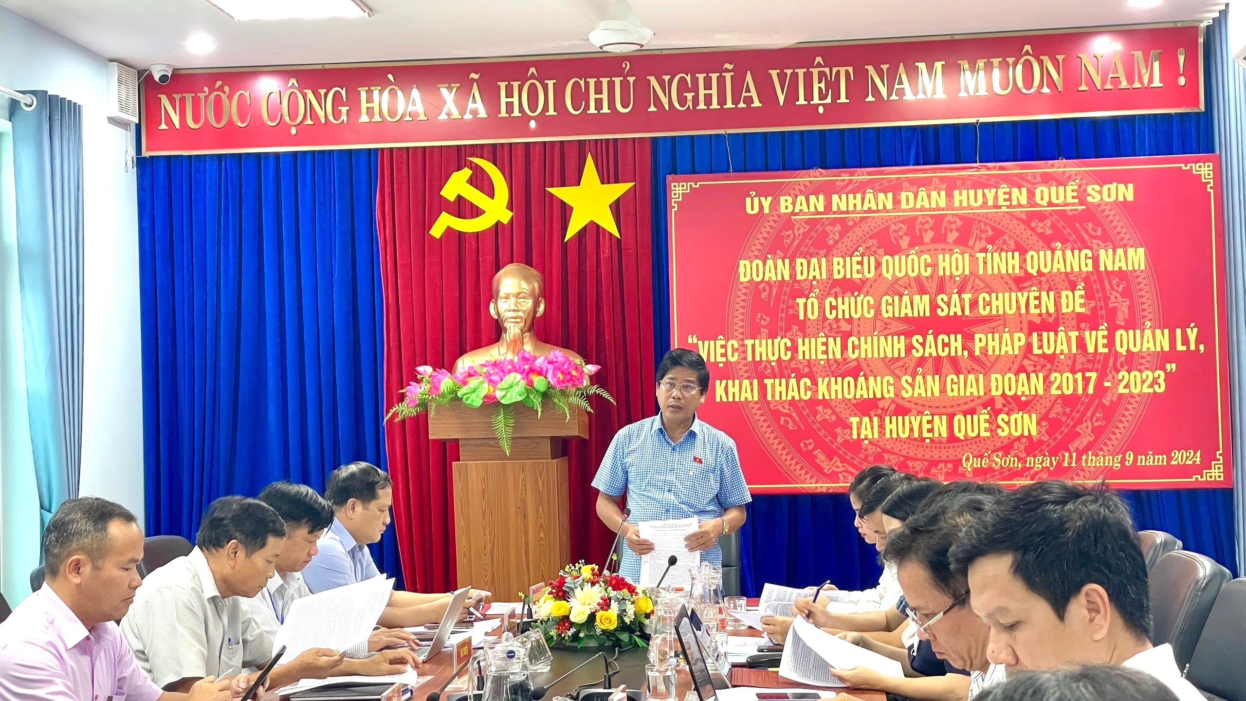 Chiều cùng ngày, Đoàn Giám sát đã tiến hành làm việc với UBND huyện Quế Sơn về công tác quản lý khai thác khoáng sản tại địa phương giai đoạn 2017 - 2023.