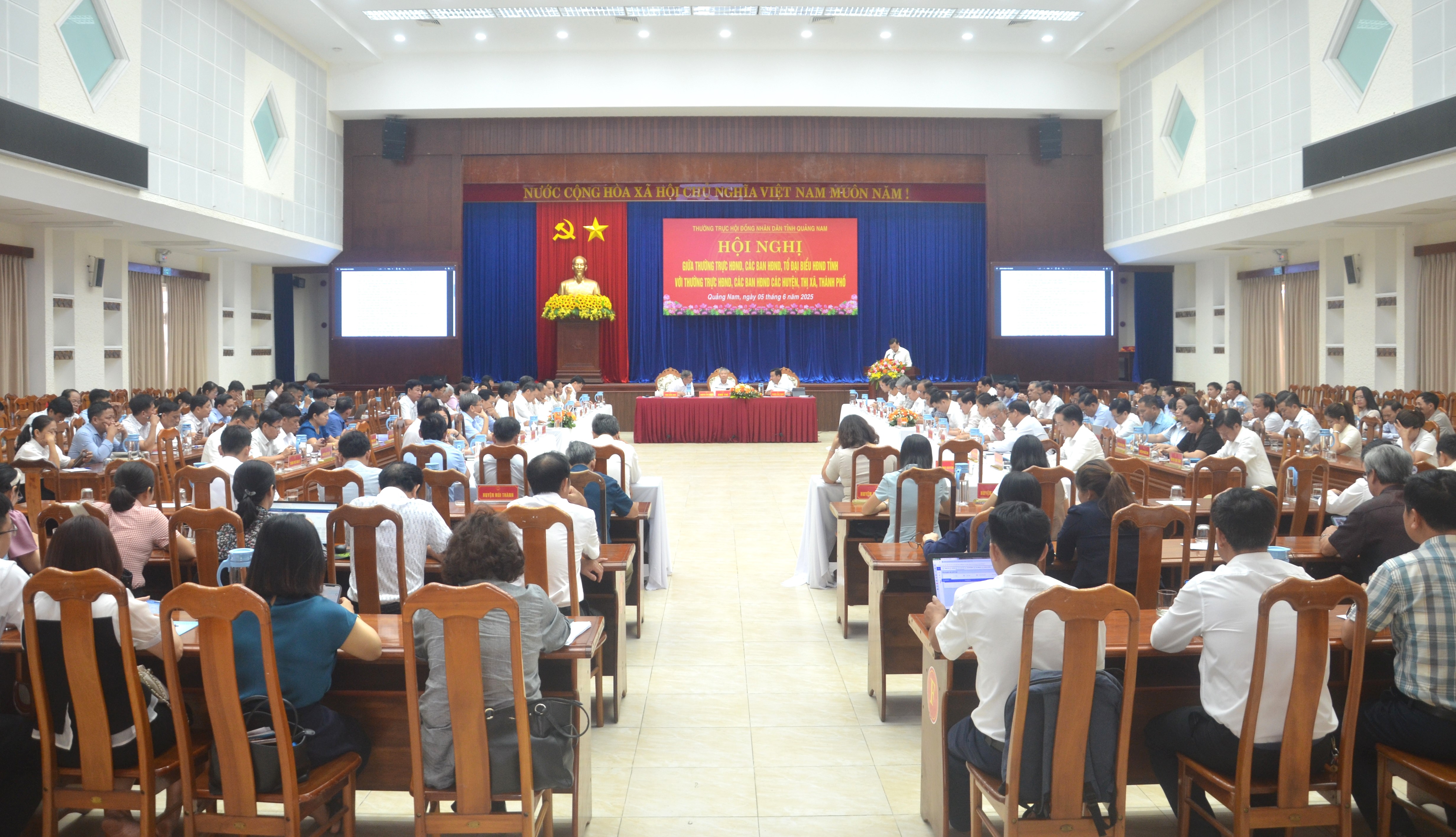 Chiều ngày 05.6.2025, Thường trực HĐND tỉnh tổ chức Hội nghị giữa Thường trực HĐND, các Ban của HĐND tỉnh, Tổ đại biểu HĐND tỉnh với Thường trực HĐND, Ban của HĐND các huyện, thị xã, thành phố nhằm đánh giá tình hình, kết quả hoạt động của HĐND các huyện, thị xã, thành phố trên địa bàn tỉnh Quảng Nam từ đầu nhiệm kỳ 2021 - 2026 đến tháng 4/2025 với sự tham gia hơn 150 đại biểu là lãnh đạo Thường trực HĐND, UBND, Ủy ban MTTQ Việt Nam tỉnh, các Ban của HĐND tỉnh; đại diện các sở, ngành và Thường trực HĐND, các Ban của HĐND, Văn phòng HĐND và UBND 17 huyện, thị xã, thành phố.