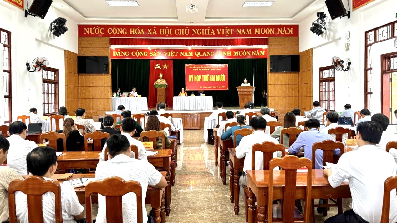 Sáng ngày 11/10/2024, HĐND huyện Bắc Trà My tổ chức kỳ họp thứ 20 (kỳ họp chuyên đề) nhằm xem xét quyết định điều chỉnh, bổ sung kế hoạch đầu tư công giai đoạn 2021-2025; bổ sung kế hoạch đầu tư năm 2024 và bầu bổ sung chức danh Uỷ viên UBND huyện, nhiệm kỳ 2021 - 2026. Đồng chủ toạ kỳ họp có bà Nguyễn Thị Tuyết Thanh - TUV, Bí thư Huyện ủy, Chủ tịch HĐND huyện và bà Lê Thị Thu Vân, UVBTV, Phó Chủ tịch HĐND huyện.
