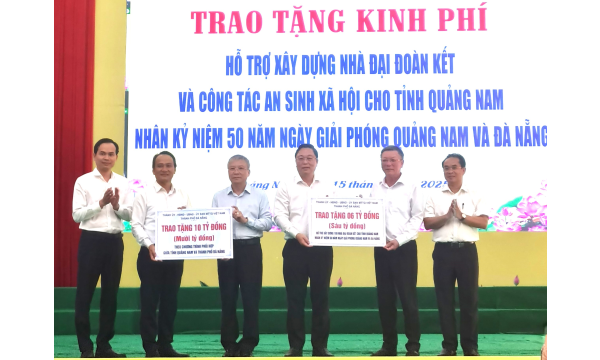 Nhân kỷ niệm 50 năm giải phóng quê hương Quảng Nam - Đà Nẵng, chiều 15/3, tại huyện Duy Xuyên, tỉnh Quảng Nam và TP.Đà Nẵng tổ chức chương trình trao kinh phí hỗ trợ xây dựng nhà đại đoàn kết và công tác an sinh xã hội tặng tỉnh Quảng Nam